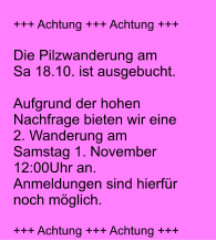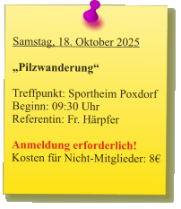 23.09./07.10.2025 Details zur Pilzwanderung + weiterer Termin siehe Termine und oben