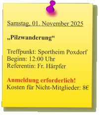 23.09./07.10.2025Details zur Pilzwanderung + weiterer Termin siehe Termine und oben