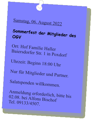 Hinweis für alle Mitglieder:Im Lauf der nächsten Wochen erhalten sie eine neue Mitgliedskarte unseres Vereins. Diese ist im klassischen Standardformat (wie bekannt von EC- oder Kreditkarte) ausgeführt.Die Verteilung erfolg persönlich oder postalisch. Wir weisen in diesem Zusammenhang gerne auf die mit der Mitgliedschaft verbundenen Einkaufsvorteilehin.