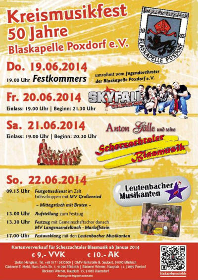Juni 2014: Kreismusikfest Poxdorf - 50 Jahre Blaskapelle
