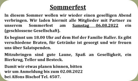 Hinweis für alle Mitglieder:Im Lauf der nächsten Wochen erhalten sie eine neue Mitgliedskarte unseres Vereins. Diese ist im klassischen Standardformat (wie bekannt von EC- oder Kreditkarte) ausgeführt.Die Verteilung erfolg persönlich oder postalisch. Wir weisen in diesem Zusammenhang gerne auf die mit der Mitgliedschaft verbundenen Einkaufsvorteilehin.
